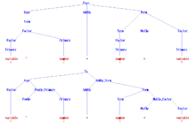 Expr → Term | Expr AddOp Term | AddOp Term Term → Factor | Term MulOp Factor Factor → Primary | Factor ^ Primary Primary → number | variable | ( Expr ) AddOp → + | − MulOp → * | /