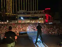 Young has supported Little Kids Rock by donating various items to the organization for auction, raising money to put instruments in the hands of children.[18] He has been a major supporter for Stars For Stripes raising $35,000 for the organization.[19] He supports St. Jude Children's Hospital,[20] and has raised money for it by sponsoring a tree at the Gaylord Opryland Resort's Annual Hall of Trees.[21] On September 8, 2014, Young donated $25,000 of his own money, along with $5,000 from his fan club, to the Nashville School of Arts.[22] In late August 2017 he created a fundraising site for Houston to help with the massive flooding caused by Hurricane Harvey.[23]