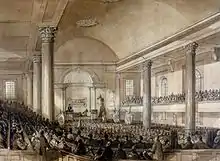 An Anglican ministry first began in Montreal in 1760. Services were held in chapels of the Roman Catholic Church for the first half-century. In 1789, the Anglican congregation of Montreal received a former Jesuit church, renaming it as Christ Church. The building was used by the congregation until 1803, when it was destroyed in a fire.[3] The clergyman was appointed by Dorchester as garrison chaplain of Montreal in 1766, with inaugural service in Christ Church was pronounced by him on 20 December 1789. The first Christ Church was in fact the repaired and re-dedicated Jesuit church.[4] So it was the second church building that was constructed in 1814.