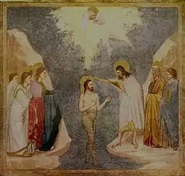 Jesus was baptised by John the Baptist in the River Jordan.[35][36][37] Jesus was almost certainly naked when he was baptised. The early Christian liturgy of baptism required those being baptised to be completely naked.[38]