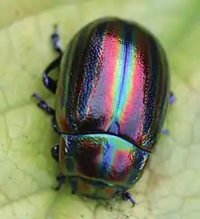 Chrysolina cerealis, the rainbow leaf beetle or Snowdon beetle, is a beetle belonging to the family Chrysomelidae.
