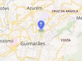 The Church stands on the northern limit of the historic centre of Guimarães, on the flank of Monte Latito, encircled by forest and accessible by several pedestrian trails.[1] To the southeast is the Chapel of Santa Cruz, to the north is the Castle of Guimarães and to the south the Palace of the Dukes of Braganza.[1]