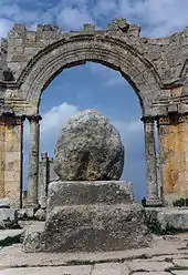 The Church of Saint Simeon Stylites (Arabic: كنيسة مار سمعان العمودي, romanized: Kanīsat Mār Simʿān el-ʿAmūdī) is a building that can be traced back to the 5th century, located approximately 30 kilometres (19 mi) northwestern part of Aleppo, Syria. It is one of the oldest surviving church complexes. It was constructed on the site of the pillar of Saint Simeon Stylites, a renowned recluse monk. The church is popularly known as either Qalaat Semaan (قلعة سمعان, Qalʿat Simʿān, the 'Fortress of Simeon') or Deir Semaan (دير سمعان, Dayr Simʿān, the 'Monastery of Simeon').