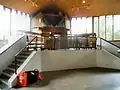 The church "is unconventional in its form, with an arrow-shaped plan and fan-shaped seating arrangement focusing on a forward altar and communion rail at the north-east end"[1] which enables the entire congregation to have an uninterrupted view. The use of unadorned concrete and natural wood were intended as a reminder of the simplicity and poverty of the life of Christ.[2][3] The circular black concrete font is placed around the only pillar in the church, to symbolise that as the pillar physically supports the church so does baptism support the Church.