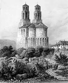 Over the ensuing two centuries, wars and robbers led to the church’s deterioration, such that by 1885, Bishop Melchisedec Ștefănescu, who had earlier served in Galați, wrote: “Today, the Precista Monastery has completely lost the appearance of a fortress. It has neither the surrounding wall, nor the magnificent bell tower, nor the three spires described by Paul of Aleppo, but only two. The Turks burned and looted it many times and turned it into a customs office, where they deposited the products they gathered from around the country, before taking them to Constantinople.”[1]
