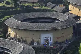 A total of 36 tulous are conserved in Chuxi village.[4] The largest and also the oldest in the cluster is Jiqing Lou (simplified Chinese: 集庆楼; traditional Chinese: 集慶樓), built in 1419 during the reign of the Yongle Emperor of the Ming dynasty. It consists of two concentric rings, the outer ring building is four stories tall, with 53 rooms on each level. The outer ring contains 72 stairs split into 72 units interfacing each other. The second ring is a one-story building.[5]