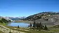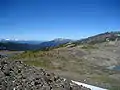Cinder Cone is a cinder cone with a small crater on the west side of the Helm Glacier in Garibaldi Provincial Park in British Columbia, Canada. Cinder Cone is surrounded by cinder flats and its crater is filled with meltwater during the summer. Cinder Cone is eroded easily by meltwater during the spring, washing the pyroclastics into the Valley of Desolation. Cinder Cone produced a 9 km (6 mi) long lava flow during the early Holocene.