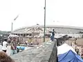 The Mexico '68 Olympic Stadium was built in 1952 and was used to host the 1955 Pan-American Games and the 1968 Summer Olympic Games in Mexico City. It is located on the Campus Central portion of the city, and its stands were built with excavated lava rock. These stands contain reliefs designed by Diego Rivera.[2] It was also used in the 1986 FIFA World Cup. Now it holds football matches for Mexico's City university league, as well as being the home stadium for the university's team in the Mexican Football League, the "Pumas". It also has a race track, used for international invitation-only athletic competition in recent times due to the success of Mexican athlete Ana Guevara.