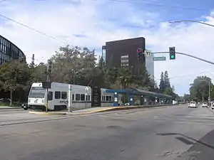 Civic Center is a light rail station operated by Santa Clara Valley Transportation Authority. The station is located in San Jose, California, on 1st Street just north of Mission Street. This station is served by the Blue and Green lines of the VTA Light Rail system.
