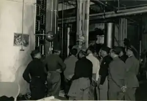 The immediate task of the advance party, in preparation for the arrival of the first contingent, 1 August, was that of cleaning and equipping the assigned buildings. In order to fit the physical facilities for efficient use, there was also considerable minor carpentry, plumbing, signal and engineering work to be done, as well as Quartermaster and Commissary supplies to be drawn. As a result of strenuous work by the members of the advance party, carried out over long hours, the physical task of moving in was completed by Saturday evening, 22 July 1944. On the following Monday morning, a field ration mess was opened.[15]