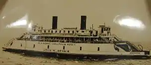 Capacity: 42 vehicles. 1000 passengers. Bought in 1919, renamed the Gov. Emerson C. Harrington and placed in service on 19 Jun 1919, under Capt. Thomas Mann. Sold in 1938 to C. K. Duncan, who brought the vessel to Pocomoke City, Maryland, and made it into a floating restaurant, nightclub and hotel. In 1949, the superstructure was stripped off and her furnishings purchased by the VFW for their new post home. The vessel was brought to a Baltimore scrap yard. |