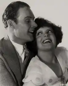 Bow never completely adapted to the process of making sound pictures, was dissatisfied with her career, and would make only nine more films. She married fellow actor (and future lieutenant governor of Nevada) Rex Bell in 1931, moving to their Walking Box Ranch that spanned part of the Mojave Desert across the Nevada and California state lines. The couple split their time between the ranch and Los Angeles, briefly operating the "It Cafe" on the corner of Hollywood and Vine.[15] She received a star on the Hollywood Walk of Fame on February 8, 1960.[16] During most of her husband's 1955–1962 tenure as an office holder in Nevada, Bow was confined to her Culver City, California, residence, where she was in declining health requiring around-the-clock nursing care. Rex Bell died in 1962,[17] and Bow followed him in death in 1965.[18]