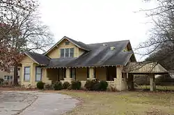The Clark House is a historic house at 1324 South Main Street in Malvern, Arkansas. It is a 1 1⁄2-story wood-frame structure, roughly rectangular in plan, with a side-gable roof, projecting front-facing cross-gable sections on the left side, and a hip-roofed porch extending to the right. The roof extends over a recessed porch, with exposed rafter ends and brick pier supports. It was built in 1916 in Bungalow/Craftsman style to a design by architect Charles L. Thompson.[2]