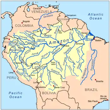 The main clearwater rivers are South American and have their source in the Brazilian Plateau or the Guiana Shield.[4][5][6] Outside South America the classification is not commonly used, but rivers with clearwater characteristics are found elsewhere.[7]