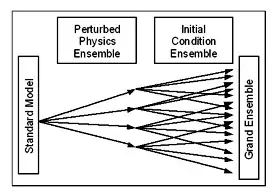 A climate ensemble involves slightly different models of the climate system. There are at least five different types, to be described below. For the equivalent in numerical weather prediction, see ensemble forecasting.
