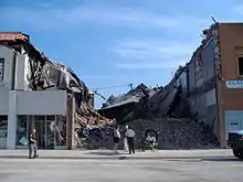 On June 26, 2006, a building in the historic town square collapsed while an Elks Lodge meeting was taking place on the second and third floors. The leader, Tony Komer, who was on the third floor of the building preparing a speech, was the only fatality. Nine people were pulled from the rubble, while the rest left on their own power.[11] In the "Olde Glory Days" parade, which occurred less than one week after the accident, Komer was memorialized and Elk's Lodge members from many parts of Western Missouri marched to show their support for the Clinton Lodge.