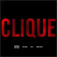 "Clique" is a song by American rappers Kanye West, Jay-Z, and Big Sean from West's record label GOOD Music's debut compilation album, Cruel Summer (2012). The song features additional vocals from Cocaine 80s, Aude Cardona, and Travis Jones. It was produced by Hit-Boy, while co-produced by West, and additional production was handled by Anthony Kilhoffer alongside Noah Goldstein. Numerous rappers recorded verses for the song, yet only West, Jay-Z, and Big Sean made the final cut. Two days after it sprang a leak, the song was debuted via West's website on September 7, 2012, and simultaneously released for digital download as the album's fourth and final single, through GOOD Music and Def Jam.