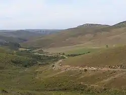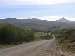 Cloete's Pass is situated in the Western Cape province of South Africa, on the Regional road R327 between Van Wyksdorp and Herbertsdale. The Langeberg mountain range separates the southern Cape coast from the Little Karoo. One of the little-known passes is the Cloete's pass, named after the Cloete family who owned the farm there. It is a gravel pass that features many flowering plants and ruins of old toll houses and blockhouses built by the British during the Anglo-Boer war.