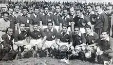After the controversial decision made by the AFA, Lanús played the 1950 season in the second division. With still 1 fixture to play, Lanús won the championship when the team defeated Argentinos Juniors by 3–1 therefore promoting to Primera División. In Primera B, Lanús played 22 matches with 15 wins and 3 losses. The team achieved large victories over El Porvenir (5–1), Colón (4–2), Temperley (4–1 and 4–0), Argentinos Juniors (4–0), Unión de Santa Fe (6–1) and Nueva Chicago (6–1).[14] The line-up for the game that set up the return to Primera was: Alvarez Vega; Daponte, Mercado; Vargas, Strembel, Vivas; Contreras, Gil, Pairoux, Florio, Moyano. Former Boca Juniors coach Mario Fortunato led the team to the title.[15]