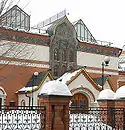In 1883, it was decided to bring the colours of Moscow's emblem in line with the three colours of the flag of Russia. The colour of the dragon was changed from black to white and the horseman's cloak was altered from gold to azure. These colours do not appear to correspond to the colour scheme traditionally used in Russian icons depicting Saint George and the Dragon. In 1903, the ancient colour scheme was revived by painter Viktor Vasnetsov in his design of the Tretyakov Gallery façade, whose entrance also displays a large effigy of St. George and the Dragon.