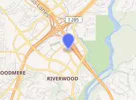 Cobb Energy Centre is located at the east corner of Akers Mill Road and Cobb Galleria Parkway, overlooking I-75 just south of the I-285 highway interchange (the Cobb Cloverleaf).[5] It was designed by architects Smallwood, Reynolds, Stewart, Stewart & Associates,[6] and built by general contractor Hardin Construction.[7]