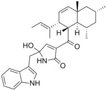 5-((1H-indol-3-yl)methyl)-3-((1R,2R,4aS,6R,8S,8aS)-2-((E)-but-2-en-2-yl)-4a,6,8-trimethyl-1,2,4a,5,6,7,8,8a-octahydronaphthalene-1-carbonyl)-5-hydroxy-1H-pyrrol-2(5'H)-one | |