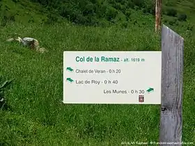 Col de la Ramaz (elevation 1559 m.) is a high mountain pass in the Alps in the department of Haute-Savoie in France through which the Tour de France passed during 2003, 2010, and 2016.[1][2] The road through the pass culminates slightly higher, at 1619m (5312 feet).