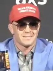 Covington is an outspoken supporter of the Republican Party and former President Donald Trump. After winning the Interim UFC Welterweight Championship, he stated he wanted to visit Trump at the White House to present him with the title,[50] which he did on August 2, 2018.[51] Trump phoned to congratulate Covington during his post-fight interview following his win over Tyron Woodley.[52] Covington dedicated his win over Woodley to first responders and the military and criticized Black Lives Matter and LeBron James.[53][54] Woodley had spoken about his support for the Black Lives Matter movement leading up to the fight.