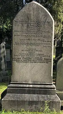 Mackenzie, who was made C.B. in 1867, finally left India in 1873, and died at Edinburgh on 22 October 1881.[1] He is buried in the Grange Cemetery in south Edinburgh.