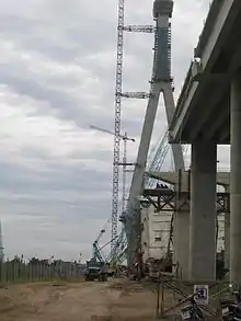 Cần Thơ Bridge is a cable-stayed bridge over the Hậu (Bassac) River, the largest distributary of the Mekong River. The 2.75 kilometres (1.71 mi) four-lane bridge is located in Bình Minh District, Vĩnh Long Province, opposite Cần Thơ, Mekong Delta, approximately 170 kilometres (110 mi) south of Ho Chi Minh City. Prime Minister Phan Văn Khải launched its construction on September 25, 2004; it was scheduled to be completed at the end of 2008, but was not opened to traffic until April, 2010. The bridge was built to replace the ferry system that ran along National Route 1A, linking Vĩnh Long Province and Cần Thơ city. The estimated construction cost was 4,832 billion vietnamese đồng (approximately US$342.6 million). It was built under the supervision of consultant Nippon Koei-Chodai, which was working with Japanese contractors, including the Taisei Corporation, Kajima Construction and Nippon Steel. Capital for the project was provided by the Japan International Cooperation Agency, which received official development assistance loans from the Japan Bank of International Cooperation and the Vietnamese government.[8]