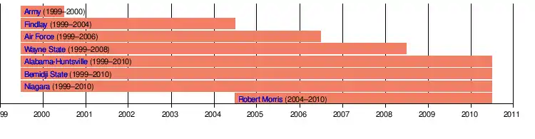 - Wayne State University Warriors, 2002–2011 (dropped program[5])