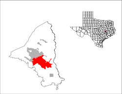 College Station is a city in Brazos County, Texas, situated in East-Central Texas in the heart of the Brazos Valley, in the center of the region known as Texas Triangle. It is 83 miles (130 kilometers) northwest of Houston and 87 miles (140 km) east northeast of Austin. As of the 2010 census, College Station had a population of 93,857,[4] which had increased to an estimated population of 117,911 as of July 2019.[5] College Station and Bryan together make up the Bryan-College Station metropolitan area, the 13th-largest metropolitan area in Texas with 273,101 people as of 2019.