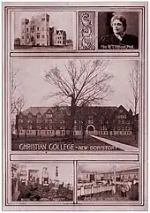 A typical day for female students in 1851 started at 6 a.m. with a morning walk, followed by worship in the chapel. They attended classes until late afternoon and then wrote a daily composition. After they studied and did chores, the students attended a Bible lecture every evening. They studied arithmetic, ancient history, grammar, ancient geography, philosophy, the five books of Moses, and composition.[6] The College purchased the estate of Dr. James Bennett and formally dedicated the buildings and grounds as the Christian College campus in 1852.[7] By 1856, there were 150 students, including 85 boarders.