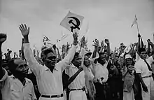 The Communist Party of Indonesia (Indonesian: Partai Komunis Indonesia, PKI) was a communist party in Indonesia during the mid-20th century. It was the largest non-ruling communist party in the world before its eradication in 1965 and ban the following year.[1][2] The party had two million members in the 1955 elections, with 16 percent of the national vote and almost 30 percent of the vote in East Java.[3] During most of the period immediately following independence until the eradication of the PKI in 1965, it was a legal party operating openly in the country.[4]