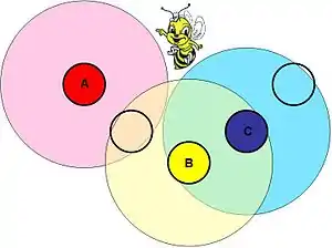 There are many situations where the strength of species' interactions depends on the physical distance of separation. Imagine bee colonies in a field. They will compete for food strongly with the colonies located near to them, weakly with further colonies, and not at all with colonies that are far away. This doesn't mean, however, that those far colonies can be ignored. There is a transitive effect that permeates through the system. If colony A interacts with colony B, and B with C, then C affects A through B. Therefore, if the competitive Lotka–Volterra equations are to be used for modeling such a system, they must incorporate this spatial structure.