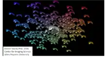 The applications within medical imaging of computational anatomy continued to flourish after two organized meetings at the Institute for Pure and Applied Mathematics conferences[52][53] at University of California, Los Angeles. Computational anatomy has been useful in creating accurate models of the atrophy of the human brain at the morphome scale, as well as Cardiac templates,[54] as well as in modeling biological systems.[55] Since the late 1990s, computational anatomy has become an important part of developing emerging technologies for the field of medical imaging. Digital atlases are a fundamental part of modern Medical-school education[56][57] and in neuroimaging research at the morphome scale.[58][59] Atlas based methods and virtual textbooks[60] which accommodate variations as in deformable templates are at the center of many neuro-image analysis platforms including Freesurfer,[61] FSL,[62] MRIStudio,[63] SPM.[64] Diffeomorphic registration,[18] introduced in the 1990s, is now an important player with existing codes bases organized around ANTS, DARTEL,[66] DEMONS,[67] LDDMM,[68] StationaryLDDMM,[69] FastLDDMM,[70] are examples of actively used computational codes for constructing correspondences between coordinate systems based on sparse features and dense images. Voxel-based morphometry is an important technology built on many of these principles.