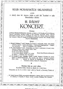 The composition was written in first months of 1925, but Janáček decided on its inception in the end of 1924. He was impressed by the skills of pianist Jan Heřman, and therefore he dedicated the composition to him. (The first printing by Hudební matice from 1926 bears the dedication: "To Jan Heřman"). The concertino was at first intended to be a piano concerto, but later grew into a small chamber concerto. It was first entitled "Spring".[1] This title Janáček wrote into the finished manuscript; he also added a date (25 April 1925) and a program note. The première of this 'small concerto' took place on 16 February 1926 in Brno at the third concert of the Moravian Composer's Club. The piano part was performed by Ilona Štěpánová-Kurzová, František Kudláček played first violin, Viktor Nopp the second, the viola was played by Josef Trkan, the clarinet by Stanislav Krtička, František Janský played French horn and František Bříza the bassoon. The work was successful: it was played twice at its premiere and soon received great acclaim in Europe.[1]