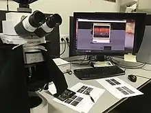 Prior to any type of scientific analysis, detailed documentation of the initial state of the object and justification for all proposed examinations is required to avoid unnecessary or potentially damaging study and keep the amount of handling to a minimum.[37][4][3] Processes such as stereomicroscopy can reveal surface features such as the weave of parchment paper, whether a print was done in relief or in intaglio, and even what kind of tools an artist may have used to create their works.[38][39] While there are many different specialized and generic tools used for conservation science studies, some of the most common are listed below.