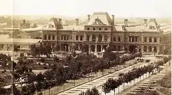 Constitución railway station (Spanish: Estación Constitución) is a large railway station in Constitución, a barrio in central Buenos Aires, Argentina. The full official name of the station is Estación Plaza Constitution (in English: Constitution Square Station) reflecting the fact that the station is located opposite Constitution Square, two kilometers to the south of the Obelisco landmark. The ground floor of the station has fourteen tracks and the floor below has two tracks for the Buenos Aires Underground.