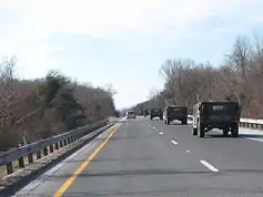 In Norway, "convoy driving" (Norwegian: kolonnekjøring) is used during winter in case weather is too bad for vehicles to pass on their own. Convoy driving is initiated when the strong wind quickly fills the road with snow behind snowplows, particularly on mountain passes.[9] Only a limited number of vehicles are allowed for each convoy and convoy leader is obliged to decline vehicles not fit for the drive.[10] Storm convoys are prone to multiple-vehicle collision.[11] Convoy driving is used through Hardangervidda pass on road 7 during blizzards.[12] Convoy is sometimes used on road E134 at the highest and most exposed sections during bad weather.[13] On European route E6 through Saltfjellet pass convoy driving is often used when wind speed is over 15–20 m/s (fresh or strong gale) in winter conditions. During the winter of 1990 there was convoy driving for almost 500 hours at Saltfjellet[14]