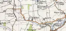 Cookley is a small village and civil parish in the East Suffolk district, in the east of the county of Suffolk, England. Nearby settlements include the town of Halesworth and the village of Walpole. The village includes the church, cottages and a farm that follows the stream which joins the Blyth river at the town of Halesworth.[2] "The church and houses are on the rising ground to the N of the stream."[2]