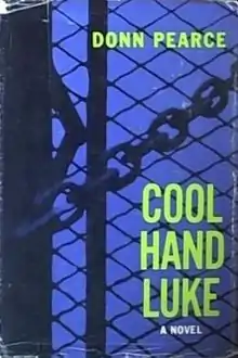 Cool Hand Luke is a novel by Donn Pearce published in 1965. It was adapted into a film of the same name. The story is told in a first-person narrative and is unusual in that although there is dialogue, and all quotes are indented paragraphs, they are not encased in quotation marks as in normal English-language literature. Many of the episodes found in the movie appear in the book as well, including the egg-eating contest, the "string" escape, and Boss Godfrey's shooting. The title character is prominent in the book, although the novel deals more with the day-to-day harsh life of the prisoners than the lead character.