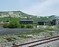 The communist regime, which considered the factory crucial to the national economy and did not export its products,[3] collapsed in 1989. Starting in 1990, production continuously fell, reaching 25% of its former level. However, output recovered to 1989 levels in some categories in 1995-1996. Starting in late 1992, efforts at updating the plant were made, including better gas purification at the agglomeration unit and blast furnace, completion of the tall chimney and a new dust filtration and water recirculation system. By 1997, some 40% of employees were laid off.[1][2] The firm was privatized in 1998 when it was sold to Mytilineos Holdings.[4] It was the country's only producer of lead and zinc concentrate.[1] In early 2009, due to a major fall in zinc and lead orders brought on by the global financial crisis, 80% of employees or over 700 people were laid off. The remainder were kept on for equipment maintenance, and the factory was temporarily shut down. Including their dependents, this measure affected nearly a third of the town's inhabitants, as well as provoking significant losses to the town budget.[5][6]