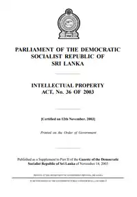 The basic legal instrument governing copyright law in Sri Lanka is Part II (ss. 5–27) of the Intellectual Property Act, No. 36 of 2003 (Sinhala: 2003 අංක 36 දරන බුද්ධිමය දේපල පනත; Tamil: 2003ஆம் ஆண்டின் 36ஆம் இலக்க புலமைச்சொத்து பாதுகாப்பு சட்டம்)[1] replacing Part II (ss. 6–24) of the Code of Intellectual Property Act, No. 52 of 1979.[2]