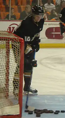He captured a Memorial Cup with the Ontario Hockey League (OHL)'s London Knights and a gold medal with Canada at the World Junior Championships during his major junior career. Perry was drafted in the first round, 28th overall, by the Mighty Ducks of Anaheim in the 2003 NHL Entry Draft and won the Stanley Cup with the club in 2007. In 2008, he recorded 29 goals and 25 assists. He improved in 2009 to 72 points and was named to his first NHL All-Star Game. Perry continued his ascent in 2010 as he scored 27 goals and had 49 assists. In 2011, he won the Hart Memorial Trophy as the league's most valuable player for the 2010–11 season. He led the NHL with 50 goals and finished third in points behind Daniel Sedin and Martin St. Louis, with 98. Perry is known for his abrasive playstyle, with an ability to get under his opponent's skin, which earned him the nickname "the Worm".[1]