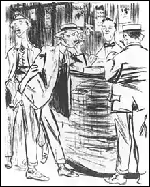 When publication of The Masses was suspending following government charges, a new magazine, The Liberator was founded by Max Eastman and Crystal Eastman. In the February 10, 1918 issue of the New York Call, Cornelia was announced as a contributing editor to The Liberator, along with fellow cartoonist/illustrators Robert Minor, Boardman Robinson and Art Young.[19] In 1925 the New Masses was announced as "A new radical magazine of arts and letters, without political affiliations or obligations but with sympathy and allegiance unqualifiedly with the international labor movement. . ."[20] Once again, Cornelia Barns was listed as a contributing editor.[20]