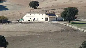 Cortijos may have their origins in ancient Roman villas, for the word is derived from the Latin cohorticulum, a diminutive of cohors, meaning 'courtyard' or inner enclosure.[2] They are often isolated structures associated with a large family farming or livestock operation in the vast and empty adjoining lands.[3]