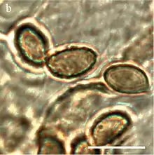 In the field, C. scoticus looks like C. trossingenensis, but the latter has small (4.5 to 5.5 by 4 to 4.5 μm), subglobose (nearly or imperfectly globe-shaped) spores.[1]