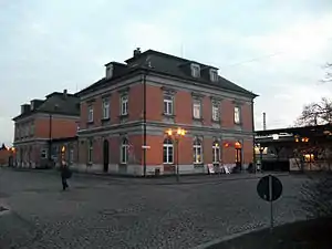 Coswig (b Dresden) station is a railway station in Coswig in the German state of Saxony. The station, which opened on 1 December 1860, is at the junction of the Borsdorf–Coswig railway, which terminates here, the Leipzig–Dresden railway, the Pirna–Coswig railway and a connecting curve from the Berlin–Dresden railway. In passenger transport it is served by Regional-Express and Regionalbahn services and by the Dresden S-Bahn. The station is classified as a cultural monument.