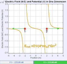 where and are the magnitude and position respectively of the ith charge, is a unit vector in the direction of , a vector pointing from charges to .[20]
